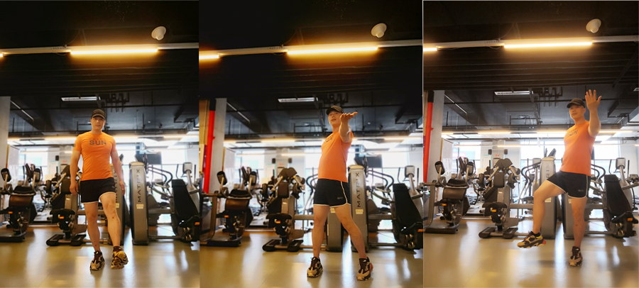 再将第一(yī)個(gè)1x4拍(pāi)的(de)動作(zuò)反方向對(duì)稱重複一(yī)遍,與前面動作(zuò)組成完整的( de)1x8拍(pāi)。